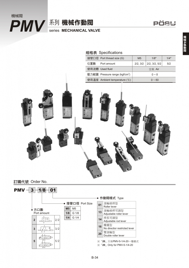 POSU機械作動閥型號參考:PMV-5-M5-16 , PMV-5-M5-14 , PMV-5-M5-13 , PMV-5-M5-01 , PMV-5-1/8-16 , PMV-5-1/8-14 , PMV-5-1/8-13 , PMV-5-1/8-01 , PMV-5-1/4-20 , PMV-5-1/4-16 , PMV-5-1/4-14 , PMV-5-1/4-13 , PMV-5-1/4-01 , PMV-3-M5-16 , PMV-3-M5-14 , PMV-3-M5-13 , PMV-3-M5-01 , PMV-3-1/8-16 , PMV-3-1/8-14 , PMV-3-1/8-13 , PMV-3-1/8-01 , PMV-3-1/4-16 , PMV-3-1/4-14 , PMV-3-1/4-13 , PMV-3-1/4-01 , PMV-2-M5-16 , PMV-2-M5-14 , PMV-2-M5-13 , PMV-2-M5-01 , PMV-2-1/8-16 , PMV-2-1/8-14 , PMV-2-1/8-13 , PMV-2-1/8-01 , PMV-2-1/4-16 , PMV-2-1/4-14 , PMV-2-1/4-13 , PMV-2-1/4-01