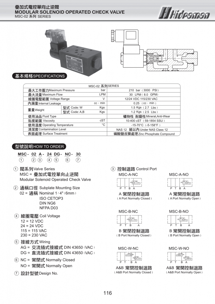 MSC-02系列疊加式電控單向止逆閥常規(guī)型號(hào)參考:MSC-02A-115AG-NC-30 , MSC-02A-115AG-NO-30 , MSC-02A-115DG-NC-30 , MSC-02A-115DG-NO-30 , MSC-02A-12AG-NC-30 , MSC-02A-12AG-NO-30 , MSC-02A-12DG-NC-30 , MSC-02A-12DG-NO-30 , MSC-02A-230AG-NC-30 , MSC-02A-230AG-NO-30 , MSC-02A-230DG-NC-30 , MSC-02A-230DG-NO-30 , MSC-02A-24AG-NC-30 , MSC-02A-24AG-NO-30 , MSC-02A-24DG-NC-30 , MSC-02A-24DG-NO-30 , MSC-02B-115AG-NC-30 , MSC-02B-115AG-NO-30 , MSC-02B-115DG-NC-30 , MSC-02B-115DG-NO-30 , MSC-02B-12AG-NC-30 , MSC-02B-12AG-NO-30 , MSC-02B-12DG-NC-30 , MSC-02B-12DG-NO-30 , MSC-02B-230AG-NC-30 , MSC-02B-230AG-NO-30 , MSC-02B-230DG-NC-30 , MSC-02B-230DG-NO-30 , MSC-02B-24AG-NC-30 , MSC-02B-24AG-NO-30 , MSC-02B-24DG-NC-30 , MSC-02B-24DG-NO-30 , MSC-02W-115AG-NC-30 , MSC-02W-115AG-NO-30 , MSC-02W-115DG-NC-30 , MSC-02W-115DG-NO-30 , MSC-02W-12AG-NC-30 , MSC-02W-12AG-NO-30 , MSC-02W-12DG-NC-30 , MSC-02W-12DG-NO-30 , MSC-02W-230AG-NC-30 , MSC-02W-230AG-NO-30 , MSC-02W-230DG-NC-30 , MSC-02W-230DG-NO-30 , MSC-02W-24AG-NC-30 , MSC-02W-24AG-NO-30 , MSC-02W-24DG-NC-30 , MSC-02W-24DG-NO-30