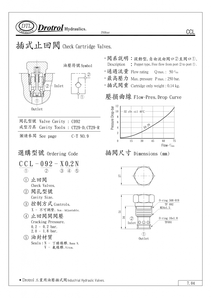 DTL插式止回閥常規(guī)型號參考:CCL-092-X0.2N , CCL-092-X0.2V , CCL-092-X2.0N , CCL-092-X2.0V