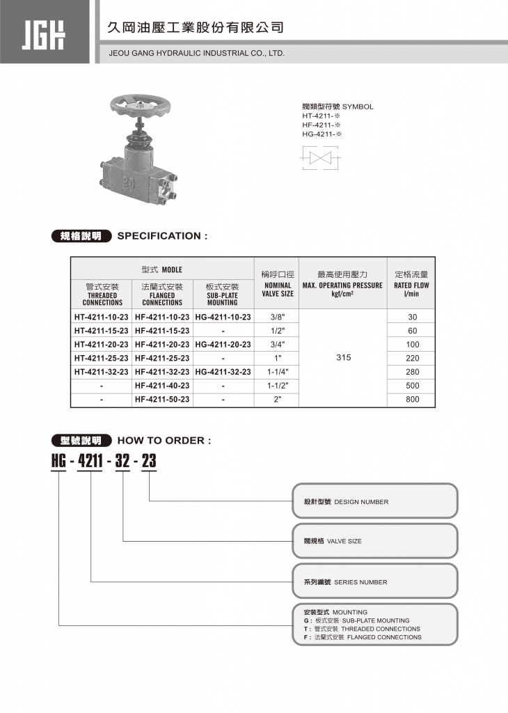 JGH久岡方向控制閥 HG,HT,HF系列中止閥