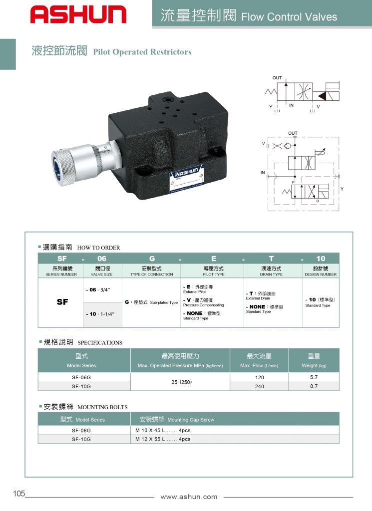 ASHUN油順流量控制閥 SF系列液控節(jié)流閥