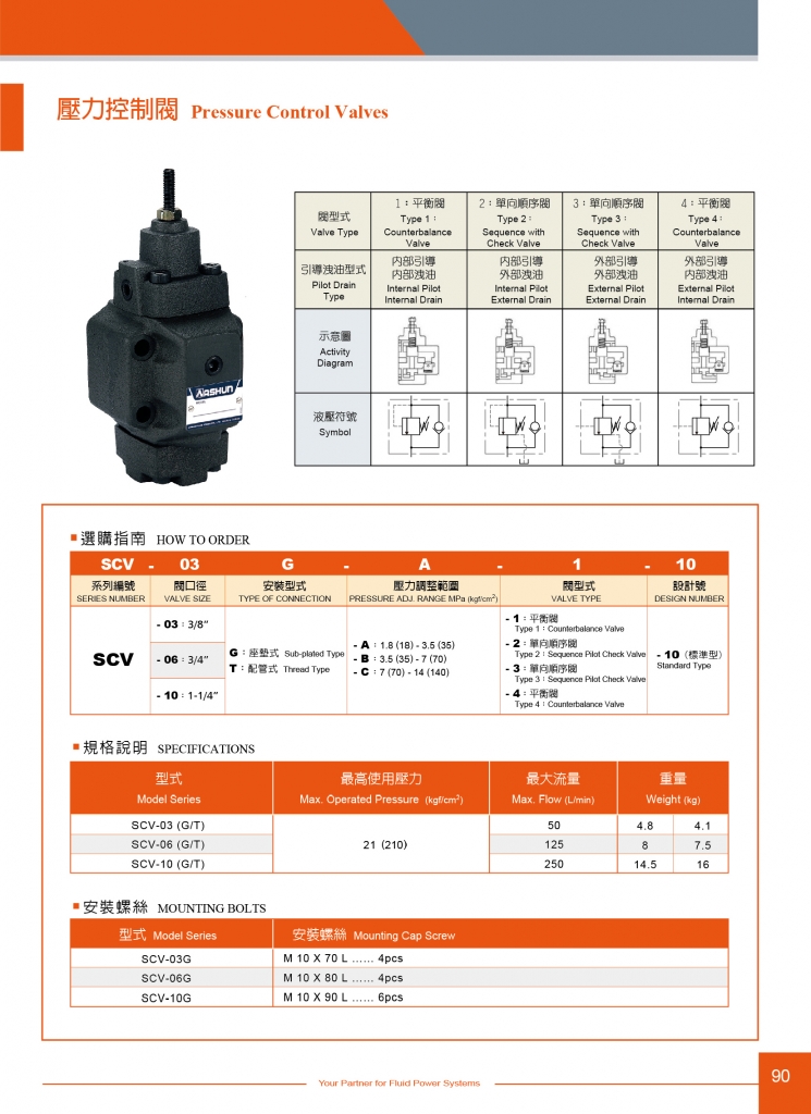 ASHUN壓力控制閥常規(guī)型號參考:SCV-03G-A-1-10 , SCV-03G-A-2-10 , SCV-03G-A-3-10 , SCV-03G-A-4-10 , SCV-03G-B-1-10 , SCV-03G-B-2-10 , SCV-03G-B-3-10 , SCV-03G-B-4-10 , SCV-03G-C-1-10 , SCV-03G-C-2-10 , SCV-03G-C-3-10 , SCV-03G-C-4-10 , SCV-03T-A-1-10 , SCV-03T-A-2-10 , SCV-03T-A-3-10 , SCV-03T-A-4-10 , SCV-03T-B-1-10 , SCV-03T-B-2-10 , SCV-03T-B-3-10 , SCV-03T-B-4-10 , SCV-03T-C-1-10 , SCV-03T-C-2-10 , SCV-03T-C-3-10 , SCV-03T-C-4-10 , SCV-06G-A-1-10 , SCV-06G-A-2-10 , SCV-06G-A-3-10 , SCV-06G-A-4-10 , SCV-06G-B-1-10 , SCV-06G-B-2-10 , SCV-06G-B-3-10 , SCV-06G-B-4-10 , SCV-06G-C-1-10 , SCV-06G-C-2-10 , SCV-06G-C-3-10 , SCV-06G-C-4-10 , SCV-06T-A-1-10 , SCV-06T-A-2-10 , SCV-06T-A-3-10 , SCV-06T-A-4-10 , SCV-06T-B-1-10 , SCV-06T-B-2-10 , SCV-06T-B-3-10 , SCV-06T-B-4-10 , SCV-06T-C-1-10 , SCV-06T-C-2-10 , SCV-06T-C-3-10 , SCV-06T-C-4-10 , SCV-10G-A-1-10 , SCV-10G-A-2-10 , SCV-10G-A-3-10 , SCV-10G-A-4-10 , SCV-10G-B-1-10 , SCV-10G-B-2-10 , SCV-10G-B-3-10 , SCV-10G-B-4-10 , SCV-10G-C-1-10 , SCV-10G-C-2-10 , SCV-10G-C-3-10 , SCV-10G-C-4-10 , SCV-10T-A-1-10 , SCV-10T-A-2-10 , SCV-10T-A-3-10 , SCV-10T-A-4-10 , SCV-10T-B-1-10 , SCV-10T-B-2-10 , SCV-10T-B-3-10 , SCV-10T-B-4-10 , SCV-10T-C-1-10 , SCV-10T-C-2-10 , SCV-10T-C-3-10 , SCV-10T-C-4-10