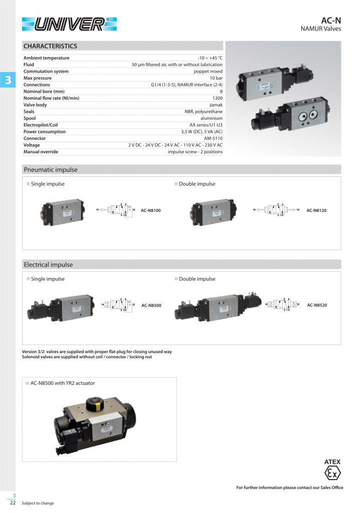 UNIVER板式電磁閥部分常規(guī)型號參考:AC-N8100 , AC-N8120 , AC-N8500 , AC-N8520