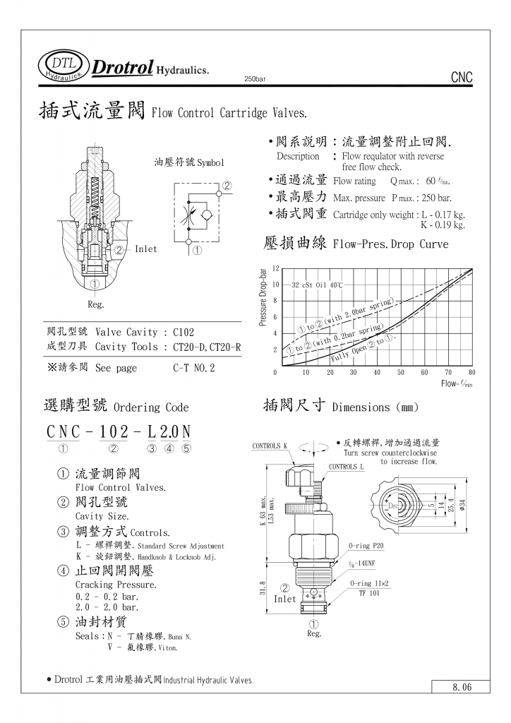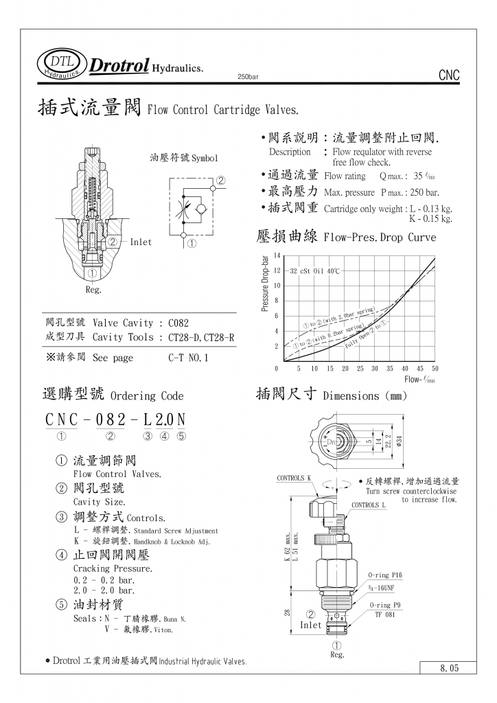DTL插式流量閥部分常規(guī)型號參考:CNC-082-K0.2N , CNC-082-K0.2V , CNC-082-K2.0N , CNC-082-K2.0V , CNC-082-L0.2N , CNC-082-L0.2V , CNC-082-L2.0N , CNC-082-L2.0V ,