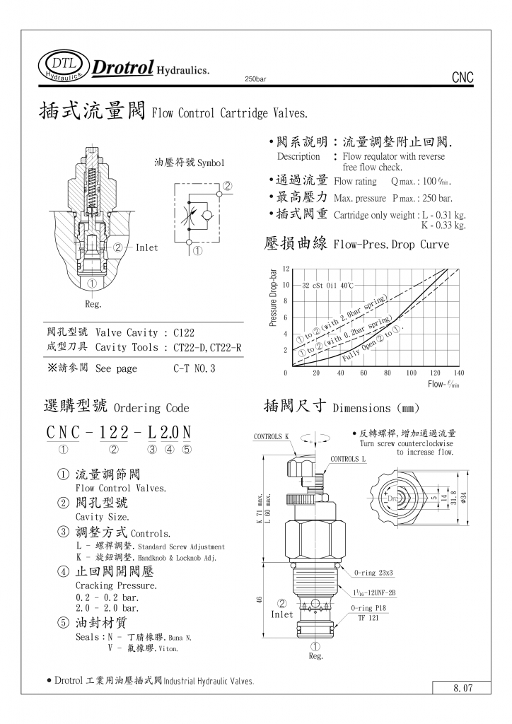 DTL插式流量閥部分常規(guī)型號參考:CNC-122-K0.2N , CNC-122-K0.2V , CNC-122-K2.0N , CNC-122-K2.0V , CNC-122-L0.2N , CNC-122-L0.2V , CNC-122-L2.0N , CNC-122-L2.0V ,