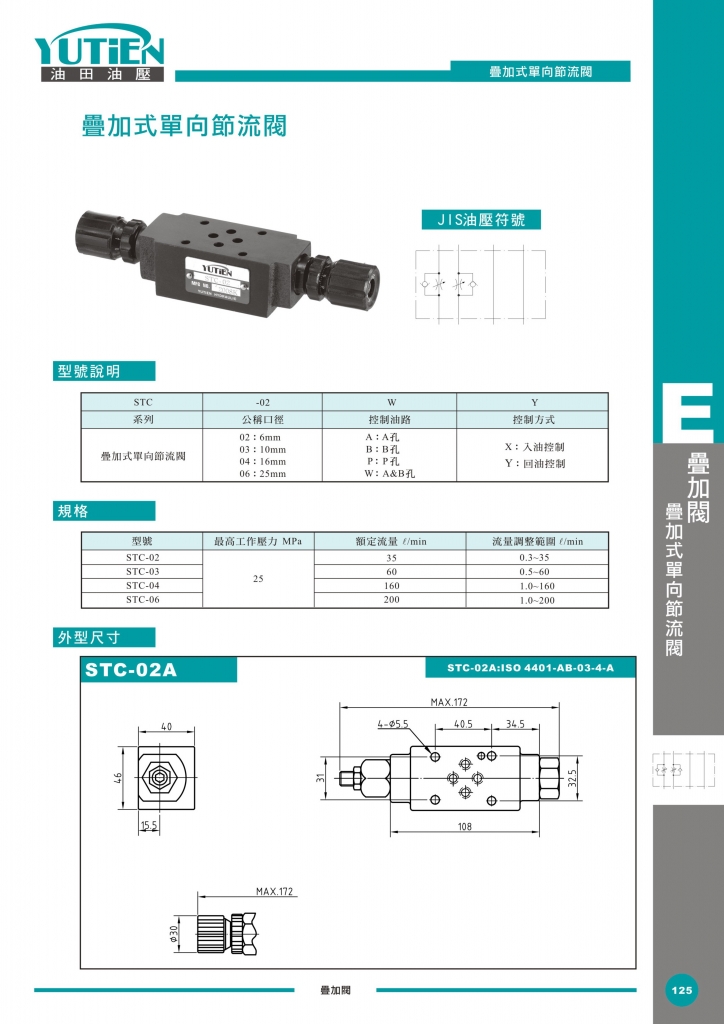 YUTIEN油田疊加閥 STC-02,03,04,06系列疊加式單向節(jié)流閥