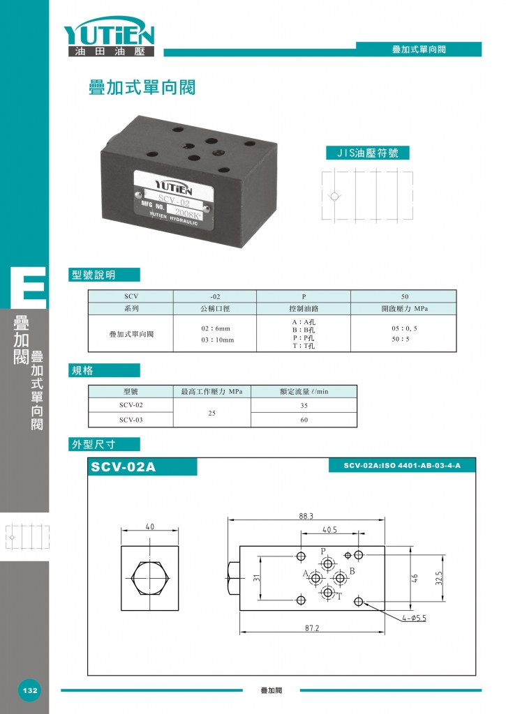 YUTIEN油田疊加閥 SCV-02,03系列疊加式單向閥