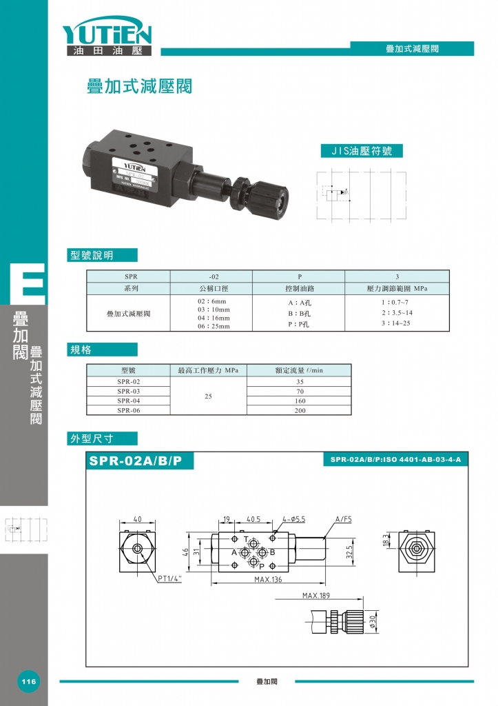 YUTIEN油田疊加閥 SPR-02,03,04,06系列疊加式減壓閥