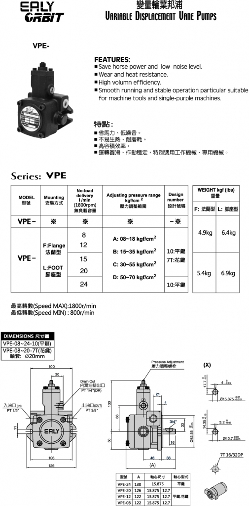 EALY低壓變量葉片泵部分常規(guī)型號(hào)參考:VPE-L8D-10 , VPE-F8D-10 , VPE-L8C-10 , VPE-F8C-10 , VPE-L8B-10 , VPE-F8B-10 , VPE-L8A-10 , VPE-F8A-10 , VPE-L12D-10 , VPE-F12D-10 , VPE-L12C-10 , VPE-F12C-10 , VPE-L12B-10 , VPE-F12B-10 , VPE-L12A-10 , VPE-F12A-10 , VPE-L15D-10 , VPE-F15D-10 , VPE-L15C-10 , VPE-F15C-10 , VPE-L15B-10 , VPE-F15B-10 , VPE-L15A-10 , VPE-F15A-10 , VPE-L20D-10 , VPE-F20D-10 , VPE-L20C-10 , VPE-F20C-10 , VPE-L20B-10 , VPE-F20B-10 , VPE-L20A-10 , VPE-F20A-10 , VPE-L24D-10 , VPE-F24D-10 , VPE-L24C-10 , VPE-F24C-10 , VPE-L24B-10 , VPE-F24B-10 , VPE-L24A-10 , VPE-F24A-10 , VPE-L8D-7T , VPE-F8D-7T , VPE-L8C-7T , VPE-F8C-7T , VPE-L8B-7T , VPE-F8B-7T , VPE-L8A-7T , VPE-F8A-7T , VPE-L12D-7T , VPE-F12D-7T , VPE-L12C-7T , VPE-F12C-7T , VPE-L12B-7T , VPE-F12B-7T , VPE-L12A-7T , VPE-F12A-7T , VPE-L15D-7T , VPE-F15D-7T , VPE-L15C-7T , VPE-F15C-7T , VPE-L15B-7T , VPE-F15B-7T , VPE-L15A-7T , VPE-F15A-7T , VPE-L20D-7T , VPE-F20D-7T , VPE-L20C-7T , VPE-F20C-7T , VPE-L20B-7T , VPE-F20B-7T , VPE-L20A-7T , VPE-F20A-7T