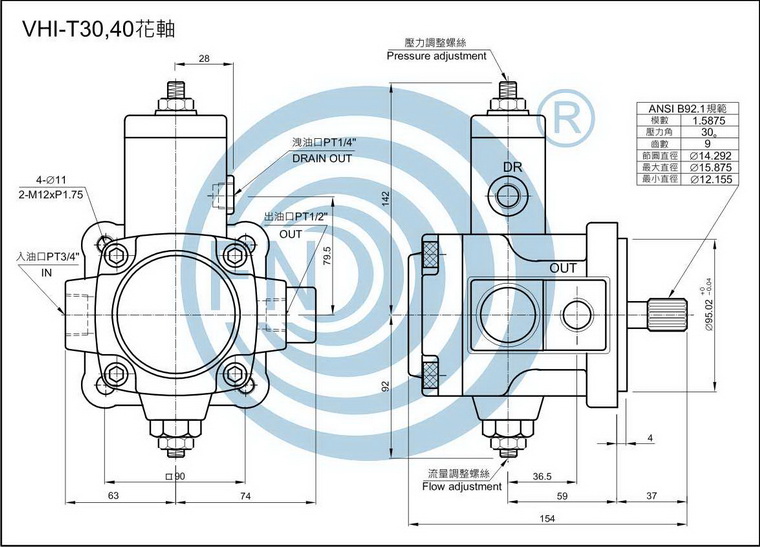◆本系列可變?nèi)萘枯喨~幫浦,係針對(duì)油壓回路之需要油量而設(shè)計(jì),故能提高回路效率,降低騷音,降低油溫,使所輸入之能量, 變成有效的功,達(dá)到節(jié)約動(dòng)力的目的。適用研磨機(jī)、自動(dòng)車床、工作母機(jī)、製鞋機(jī)械及其他各種專用機(jī)或單能機(jī)。 另有9齒花鍵軸及專用配套電機(jī)。 ◆型式號(hào)碼表示法 / MODEL NUMBER DESIGNATON VHI──F──30──A2?–?? –T9???? ??