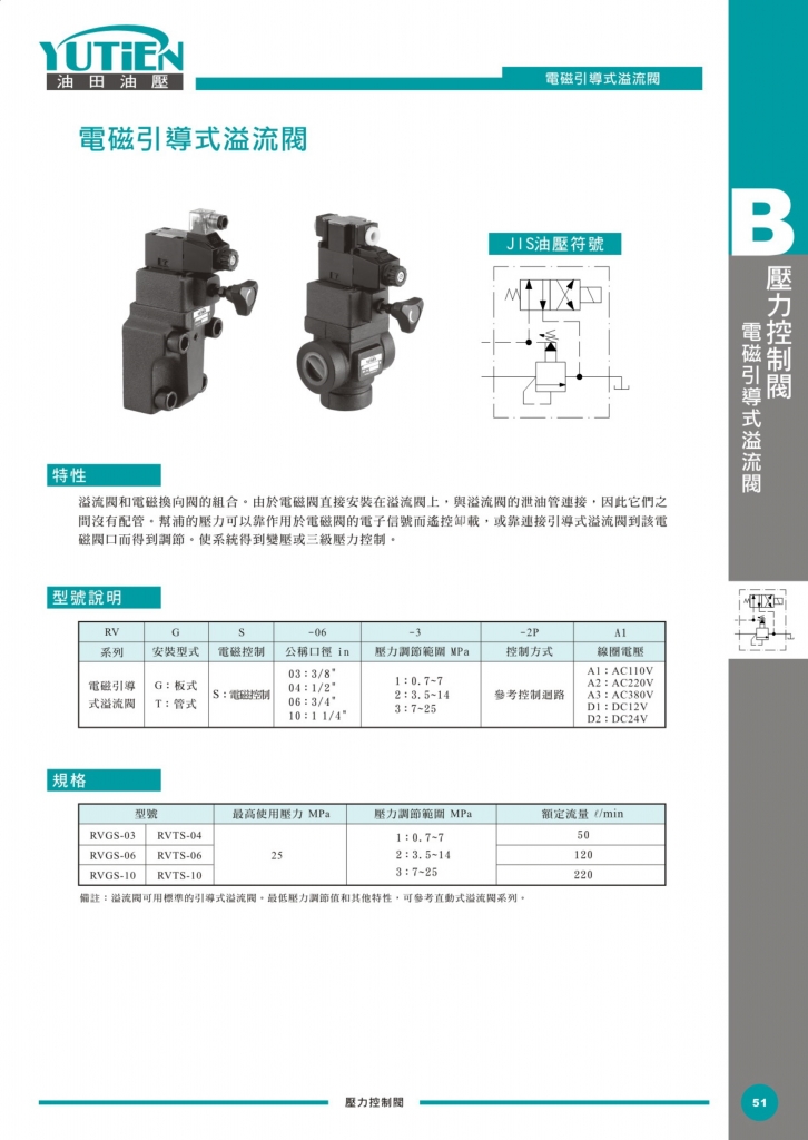 YUTIEN油田壓力控制閥 RVGS,RVTS系列電磁引導(dǎo)式溢流閥