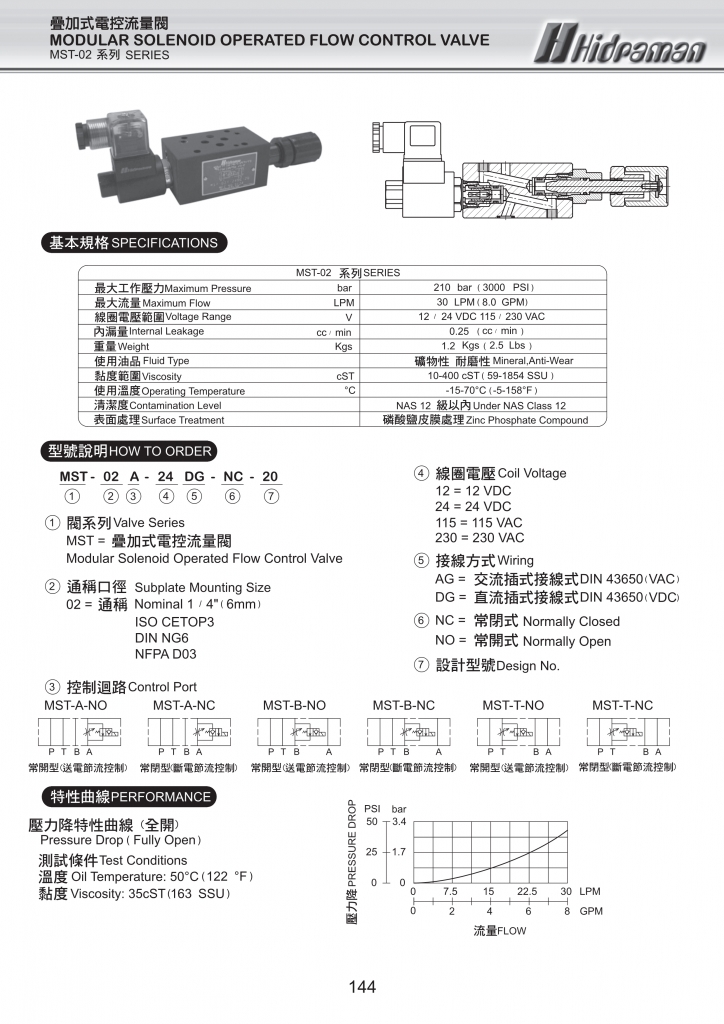 HIDRAMAN海德門疊加式控制閥 MST-02,MST-03系列疊加式電控流量閥