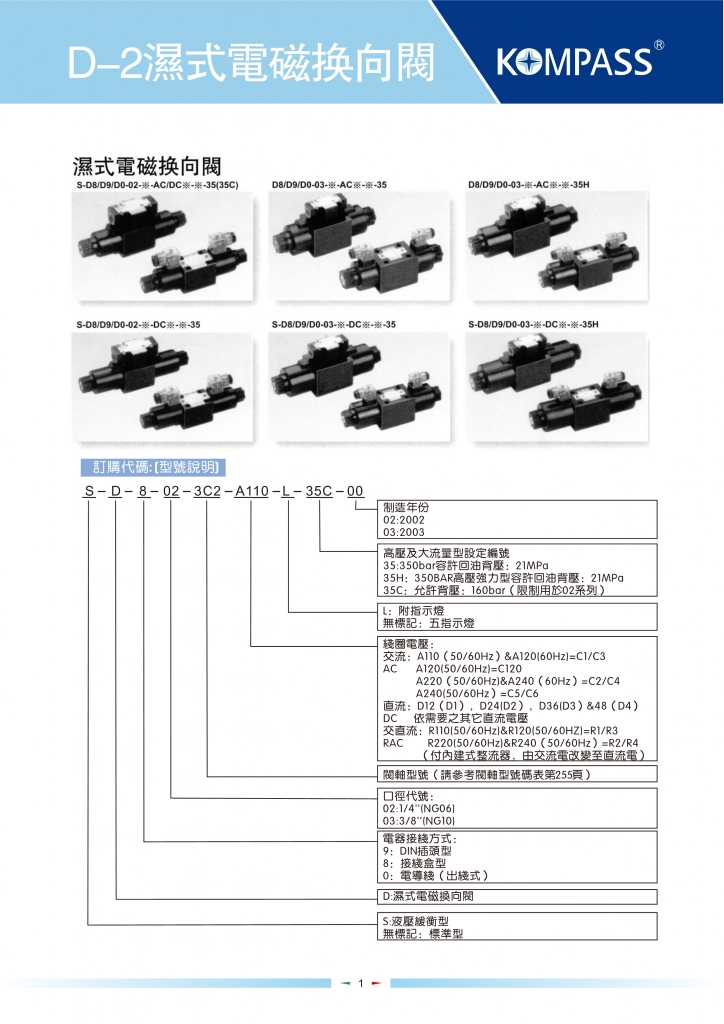 KOMPASS康百世電磁閥 S-D0,S-D8,S-D9系列濕式電磁換向閥