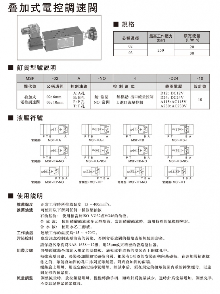 NORTHMAN北部精機疊加閥 MSF-02,03系列疊加式電控調(diào)速閥