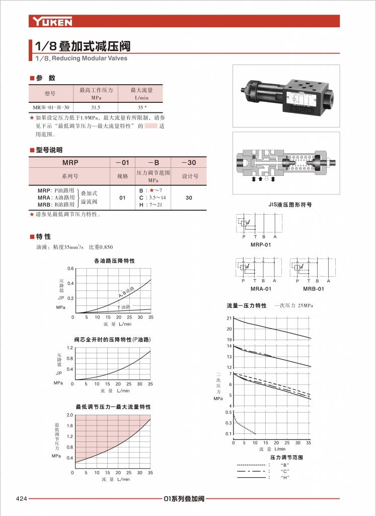 YUKEN油研疊加閥 MRP,MRA,MRB-01系列疊加式減壓閥