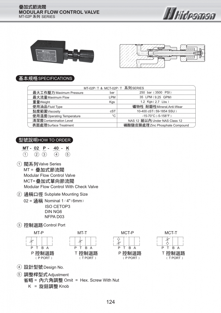 HIDRAMAN海德門疊加閥 MT-02,03系列疊加式節(jié)流閥