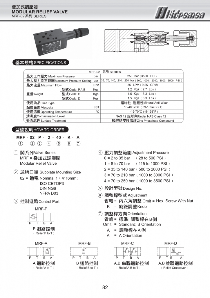 HIDRAMAN海德門疊加閥 MRF-02,03系列疊加式調(diào)壓閥