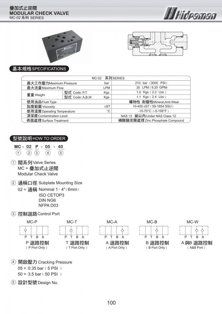 HIDRAMAN海德門疊加閥 MC-02,03系列疊加式止逆閥