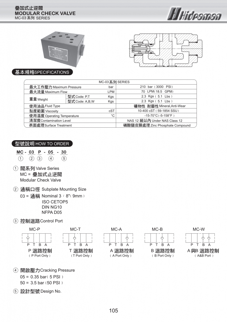 HIDRAMAN疊加式止逆閥部分常規(guī)型號參考:MC-02A-05-40 , MC-02A-50-40 , MC-02B-05-40 , MC-02B-50-40 , MC-02P-05-40 , MC-02P-50-40 , MC-02T-05-40 , MC-02T-50-40 , MC-02W-05-40 , MC-02W-50-40 HIDRAMAN疊加式止逆閥部分常規(guī)型號參考:MC-03A