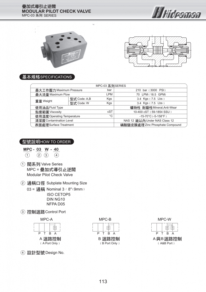 HIDRAMAN疊加式引導(dǎo)止逆閥部分常規(guī)型號(hào)參考:MPC-02A-30 , MPC-02B-30 , MPC-02W-30 HIDRAMAN疊加式引導(dǎo)止逆閥部分常規(guī)型號(hào)參考:MPC-03A-40 , MPC-03B-40 , MPC-03W-40