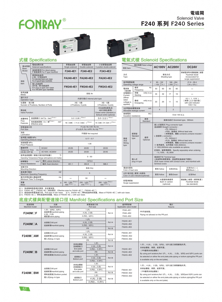 FONRAY芳銳電磁閥 F110 / F180 / F240 系列電磁閥