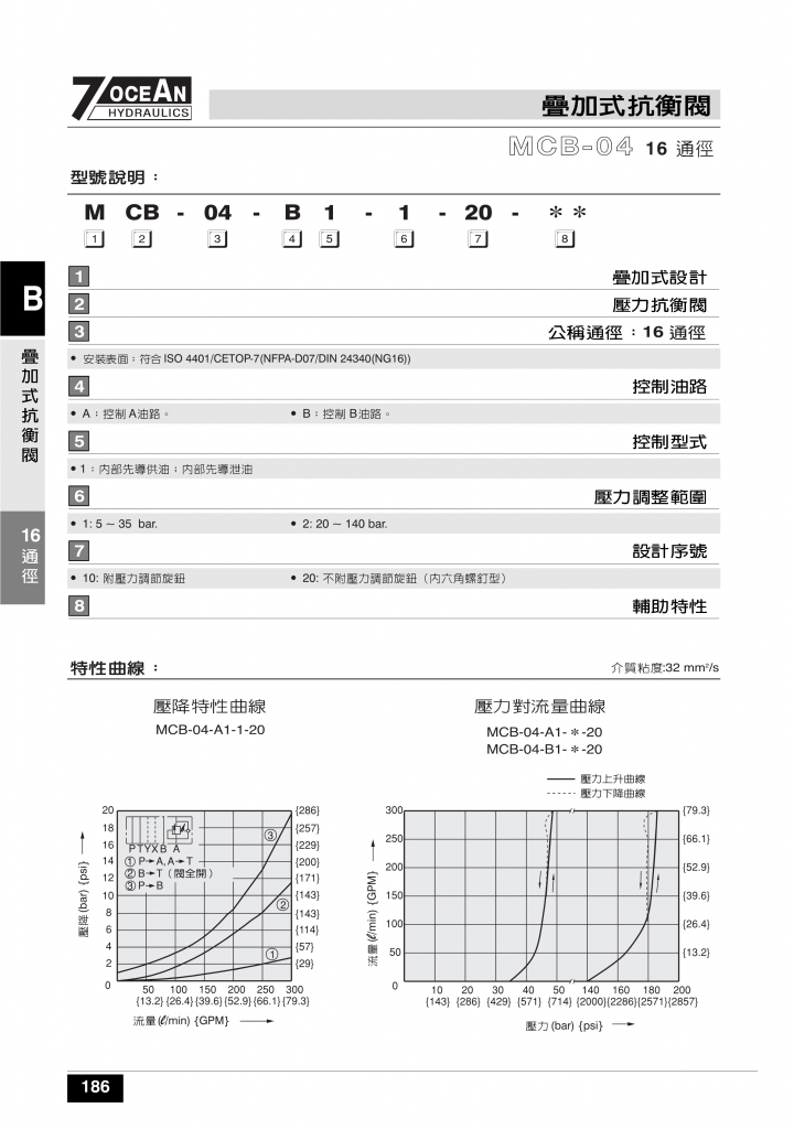 7OCEAN七洋疊加閥 MCB-02,04系列疊加式抗衡閥