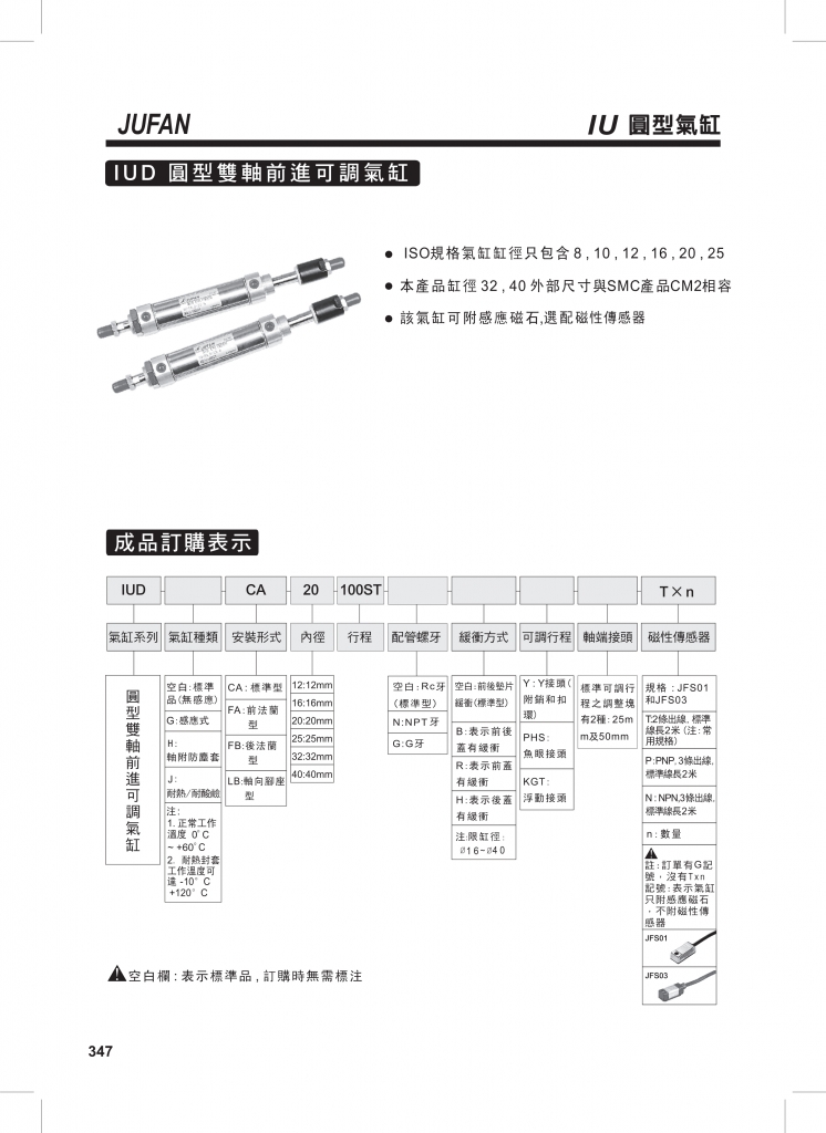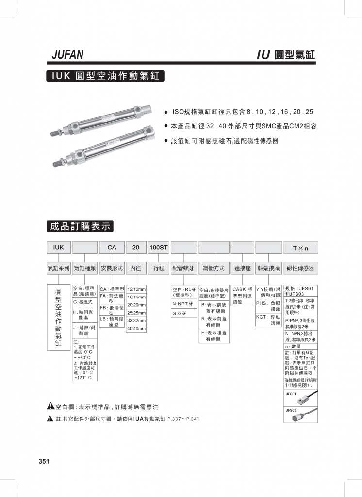 JUFAN君帆氣缸 IU系列ISO-6432系列圓形氣缸