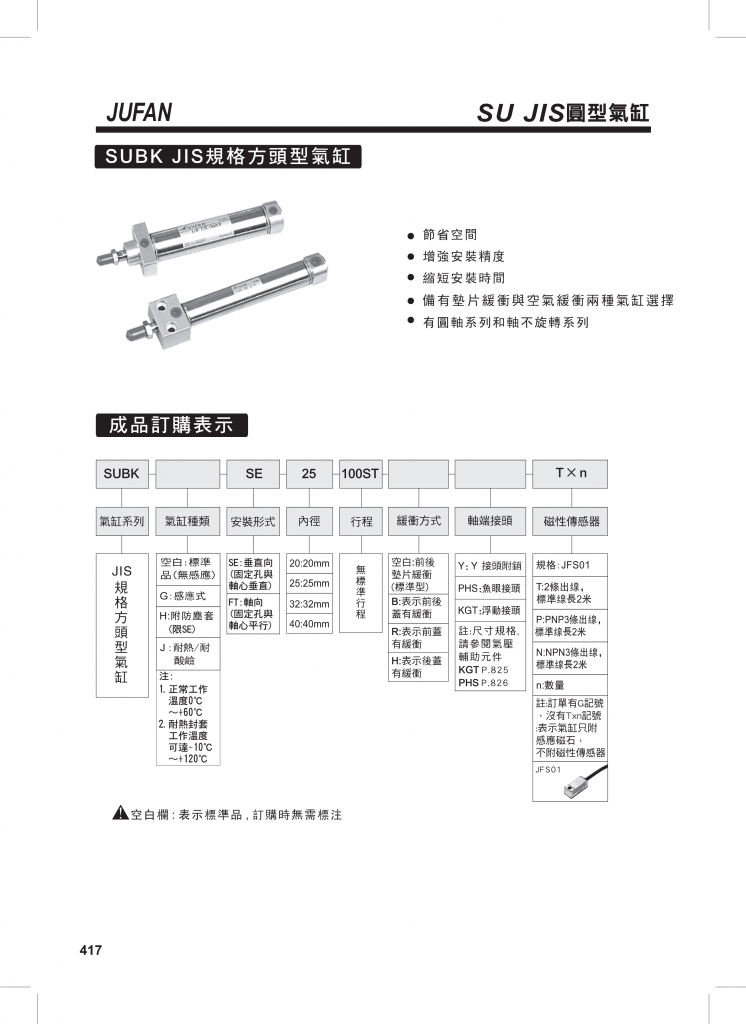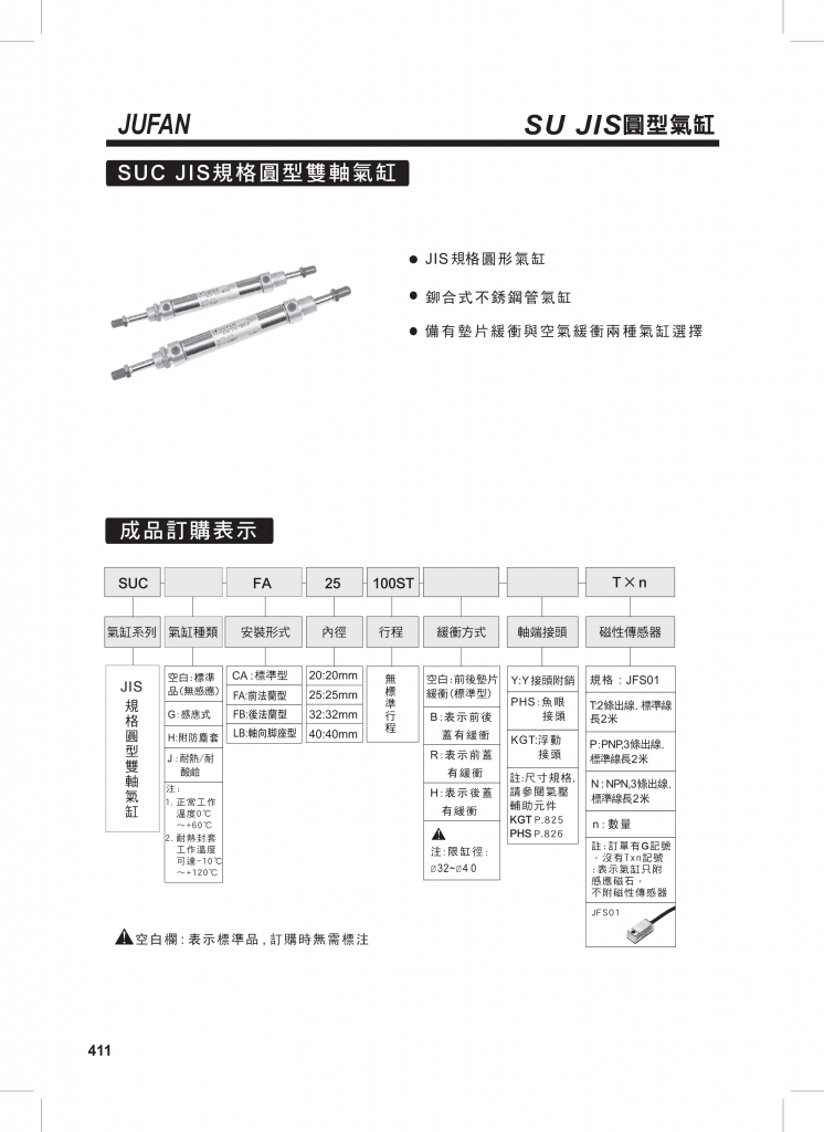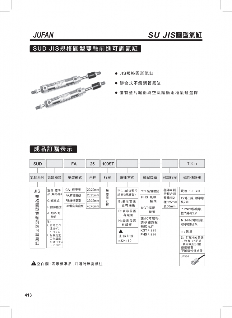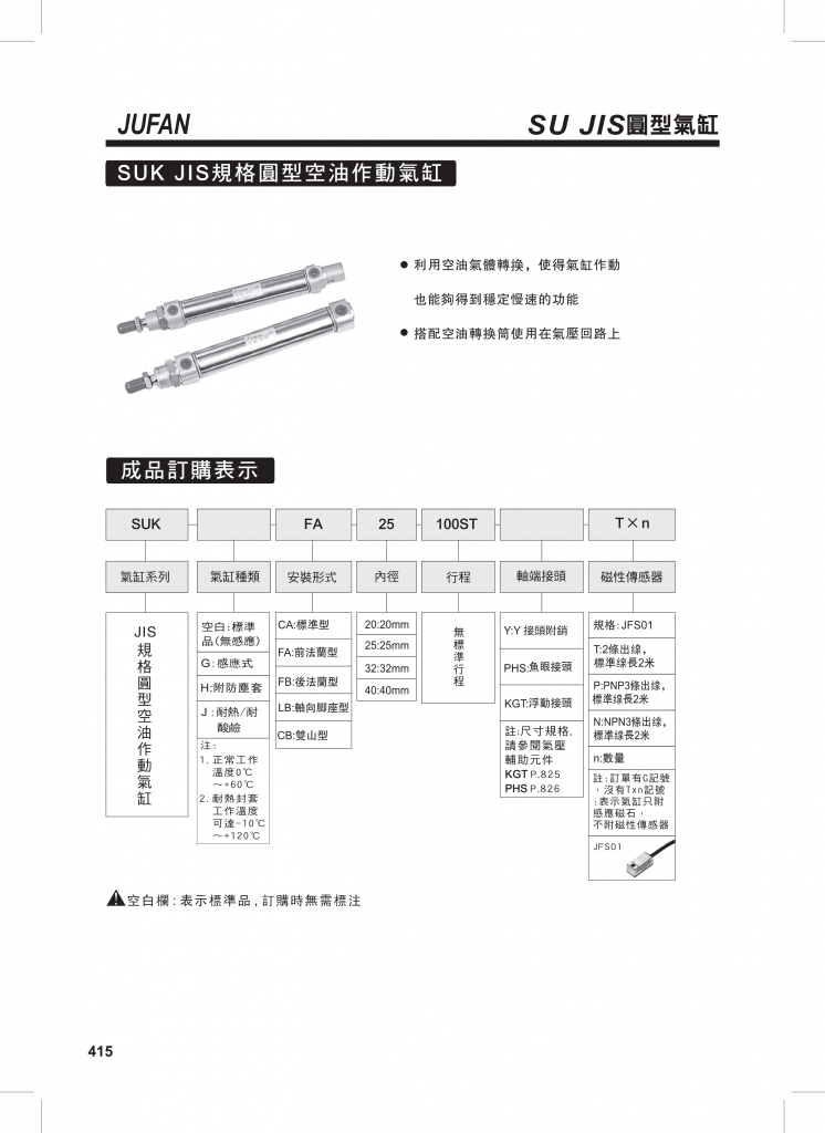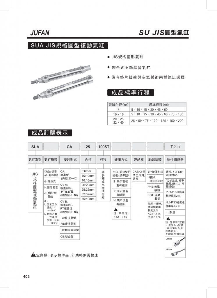 JUFAN君帆氣缸 SU系列JIS圓形氣缸