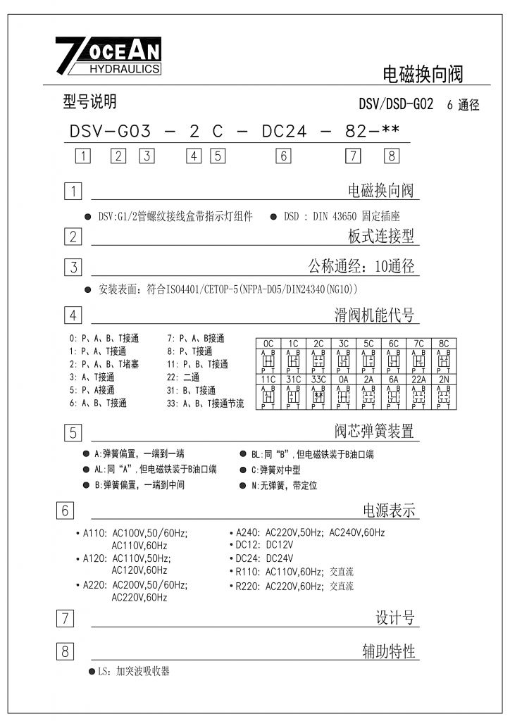 7OCEAN七洋電磁閥 DSV,DSD-G03系列濕式電磁鐵操作換向閥