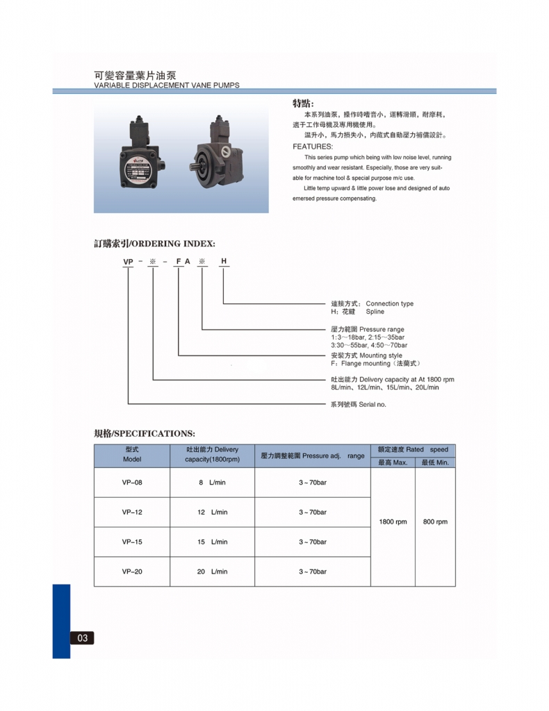 ELITE變量葉片泵部分常規(guī)型號(hào)參考:VP-08-FA1 , VP-08-FA1-H , VP-08-FA2 , VP-08-FA2-H , VP-08-FA3 , VP-08-FA3-H , VP-08-FA4 , VP-08-FA4-H , VP-12-FA1 , VP-12-FA1-H , VP-12-FA2 , VP-12-FA2-H , VP-12-FA3 , VP-12-FA3-H , VP-12-FA4 , VP-12-FA4-H , VP-15-FA1 , VP-15-FA1-H , VP-15-FA2 , VP-15-FA2-H , VP-15-FA3 , VP-15-FA3-H , VP-15-FA4 , VP-15-FA4-H , VP-20-FA1 , VP-20-FA1-H , VP-20-FA2 , VP-20-FA2-H , VP-20-FA3 , VP-20-FA3-H , VP-20-FA4 , VP-20-FA4-H
