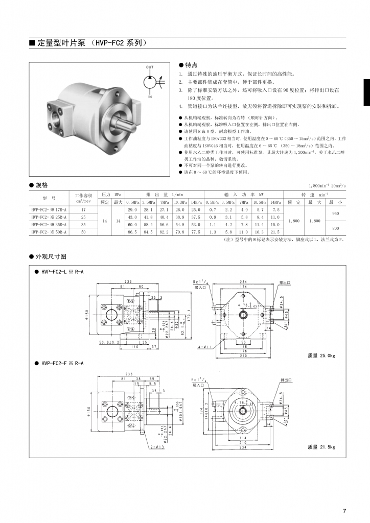TOYOOKI豐興葉片泵 HVP-FC2系列定量葉片泵