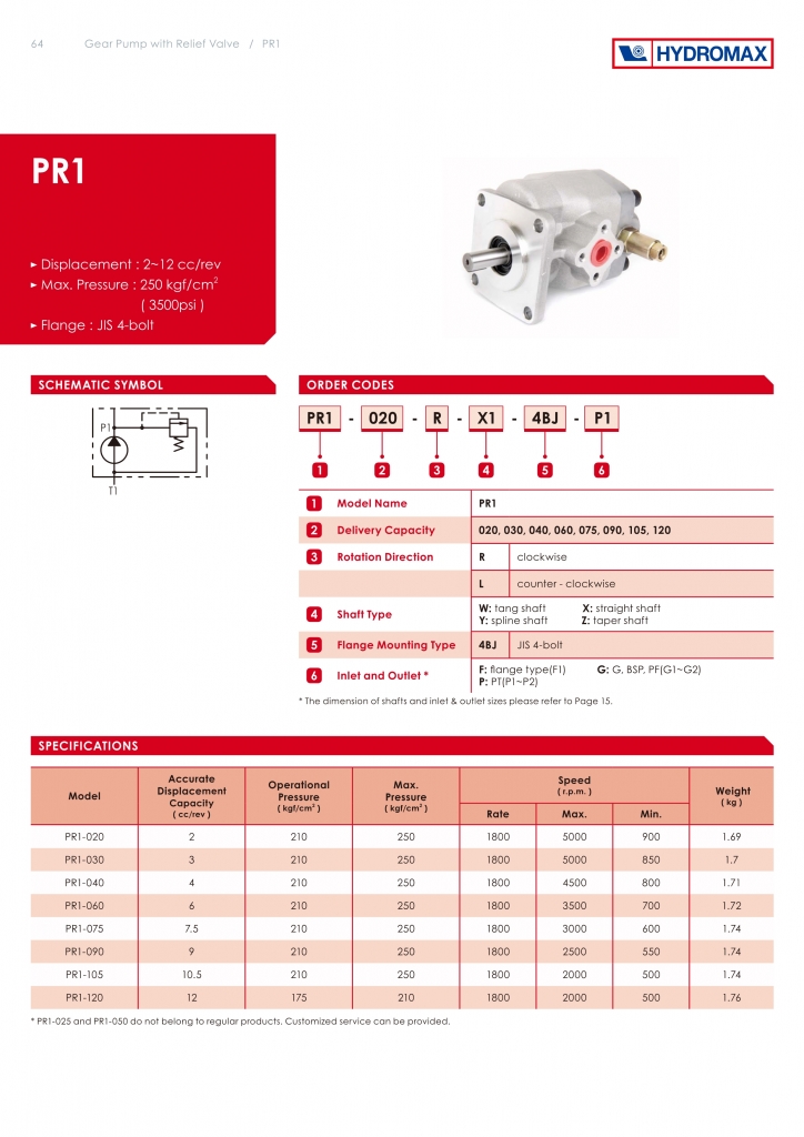 Model Accurate Pressure (kgf/cm2) Speed (r.p.m) Weight(kg)