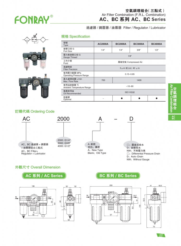 過濾器 + 調(diào)壓閥 + 油霧器?–?AC、BC