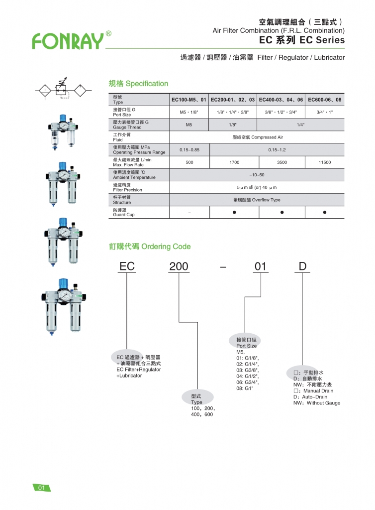 過濾器 + 調(diào)壓閥 + 油霧器 – EC 過濾器 + 調(diào)壓器 + 油霧器