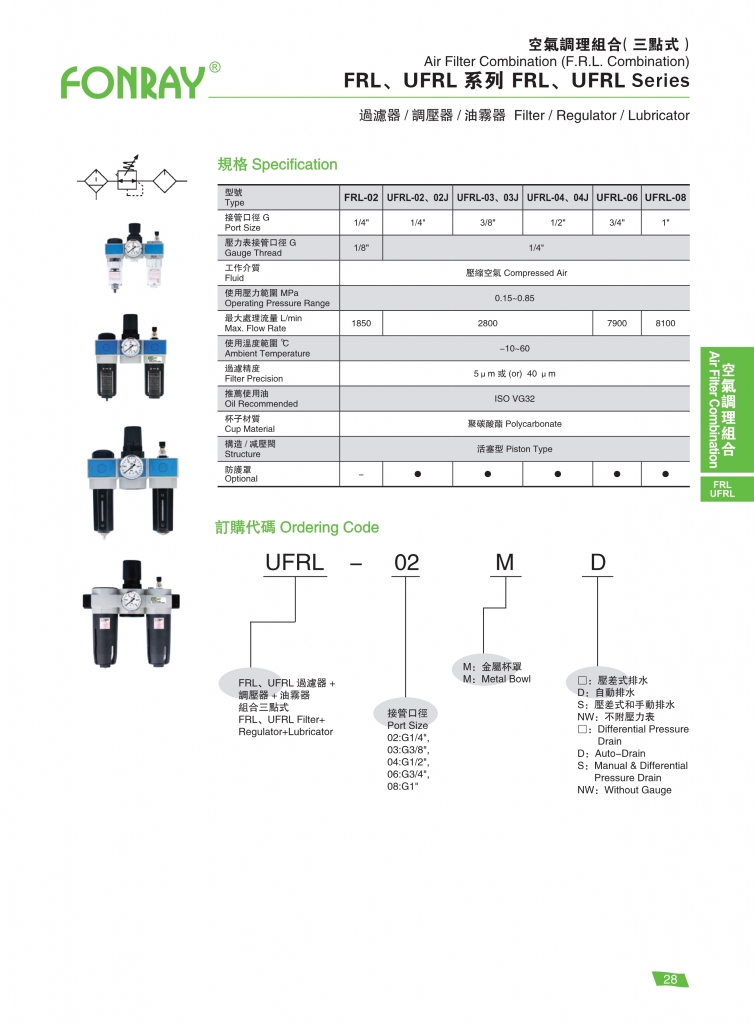 過濾器 + 調(diào)壓閥 + 油霧器 – FRL、UFRL