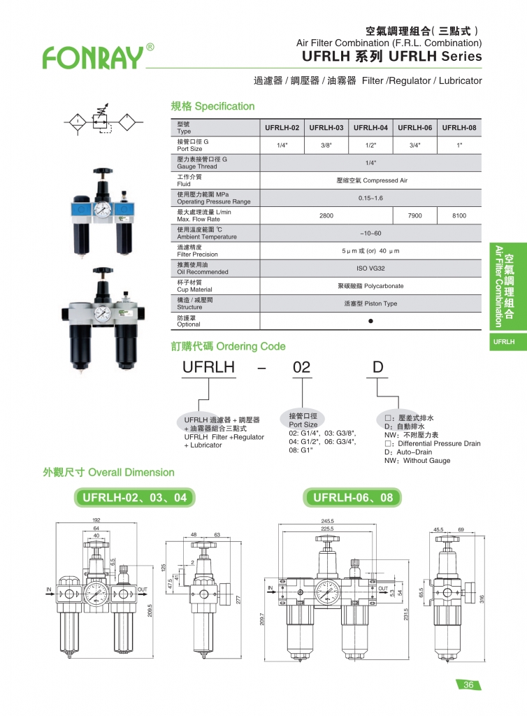 過濾器 + 調(diào)壓閥 + 油霧器 – UFRLH 系列 高壓型